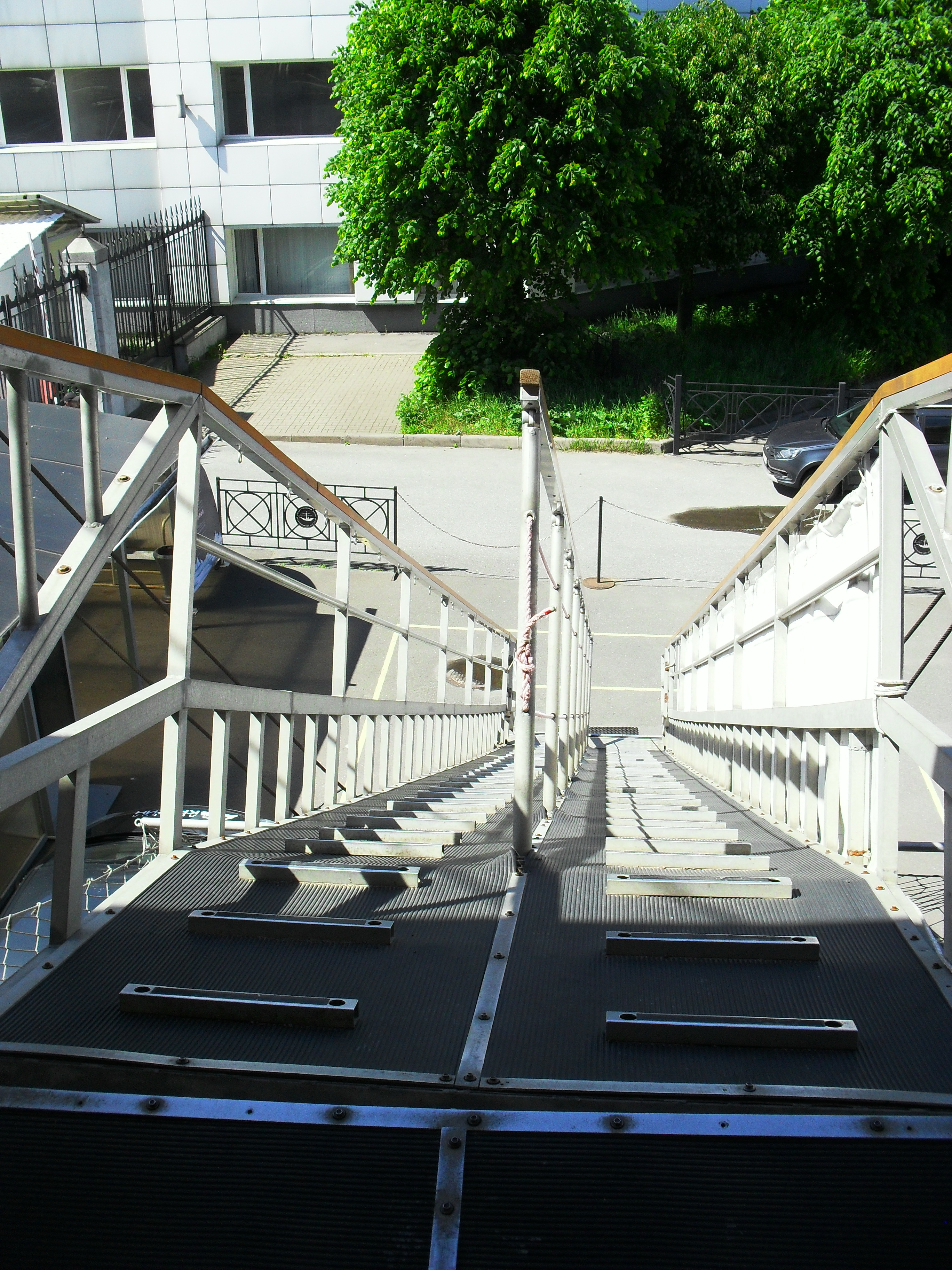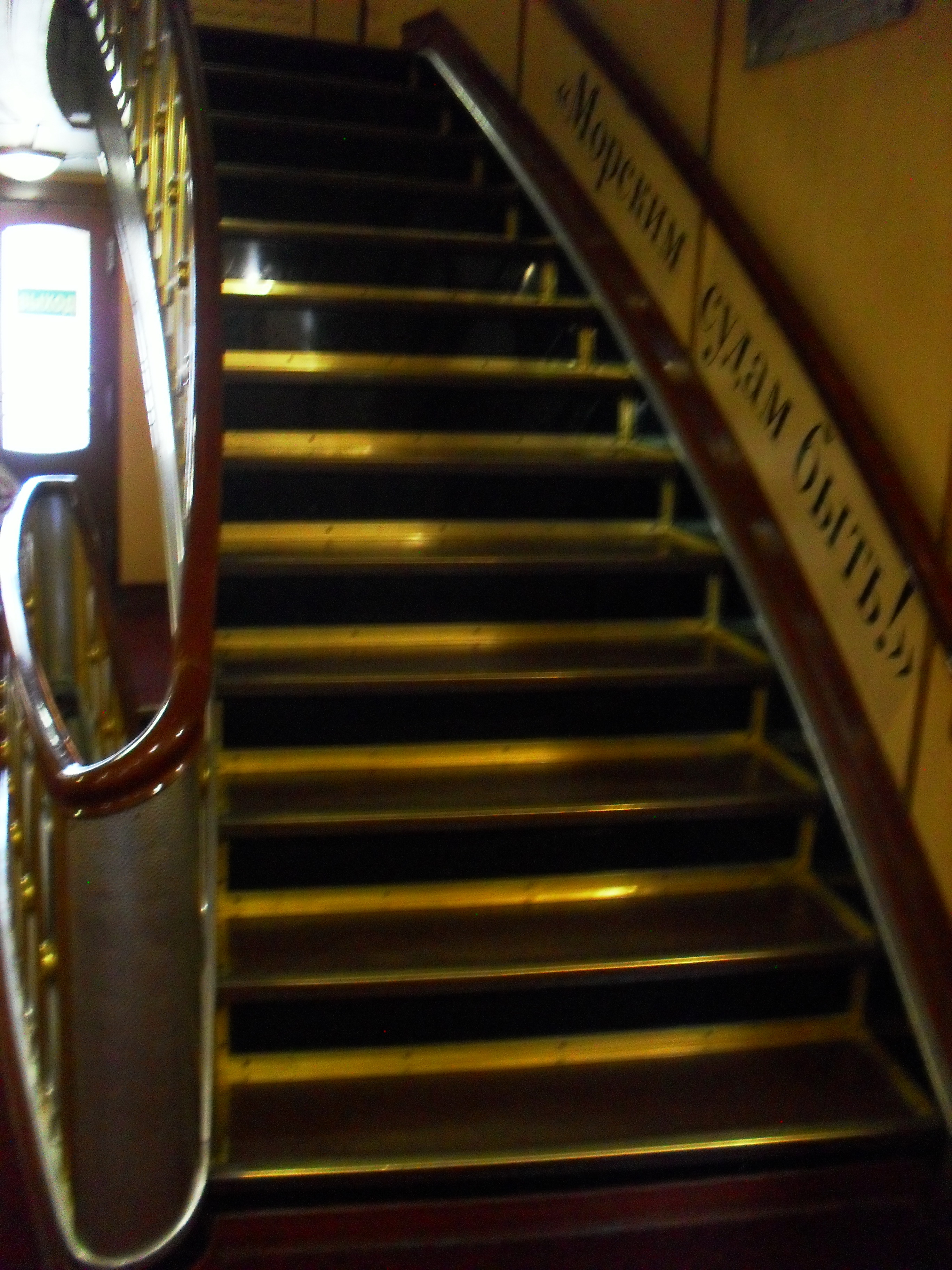 Подняться на борт нужно по этому трапу. Тот еще квест. Внизу висит предупоеждение, что в обуви на каблуке, без задника и на скользкой подошве на ледокол не пустят. Неудивительно - пришлось подниматься и спускаться по почти отвесным трапам. Спускаться особенно трудно.
