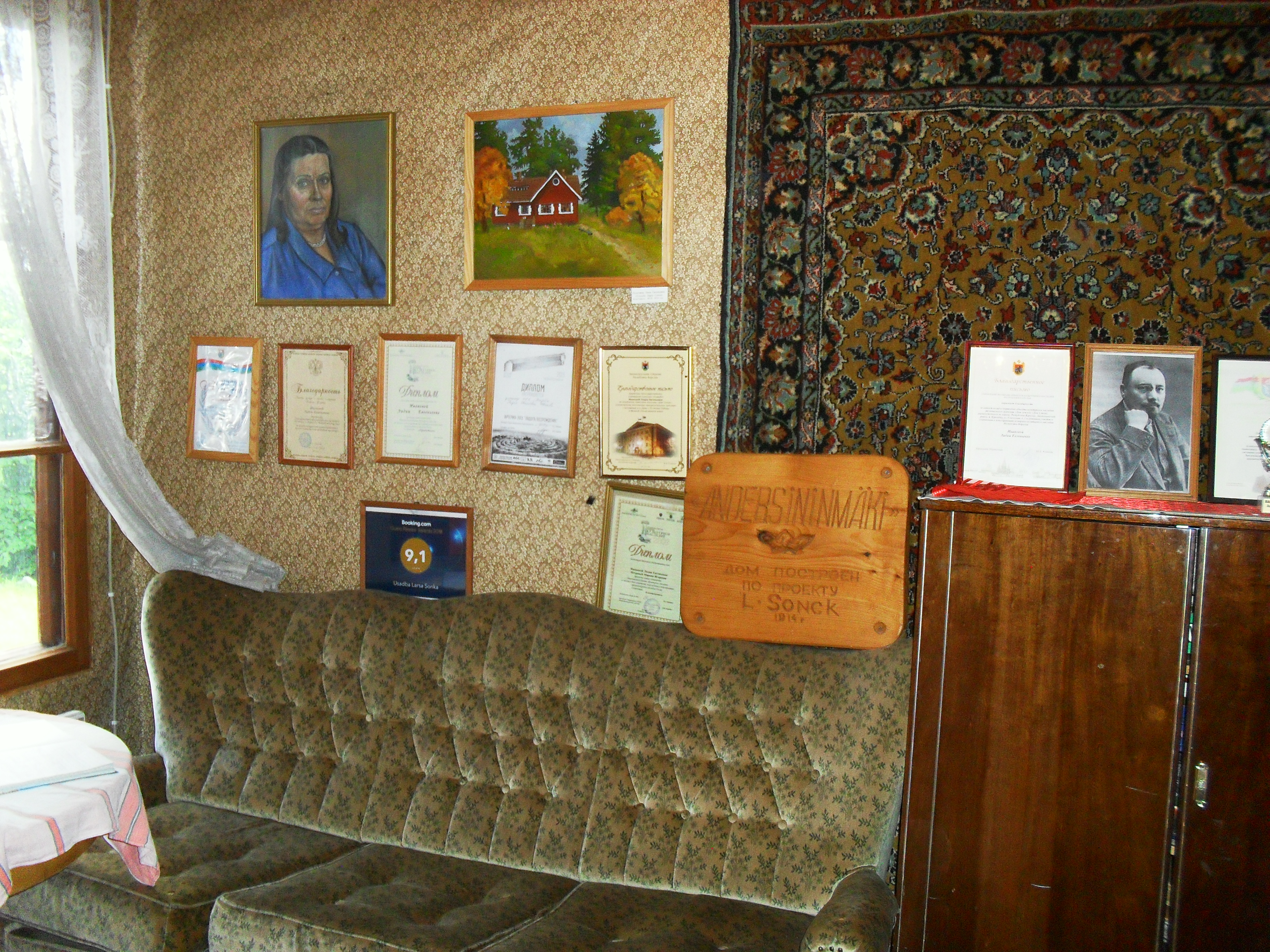 В самой усадьбе всего две смежных комнаты для осмотра, в остальных живет родня Сонка - внук с бабушкой. Рассказывали, как по крупицам собирали экспонаты и восстанавливали дом.