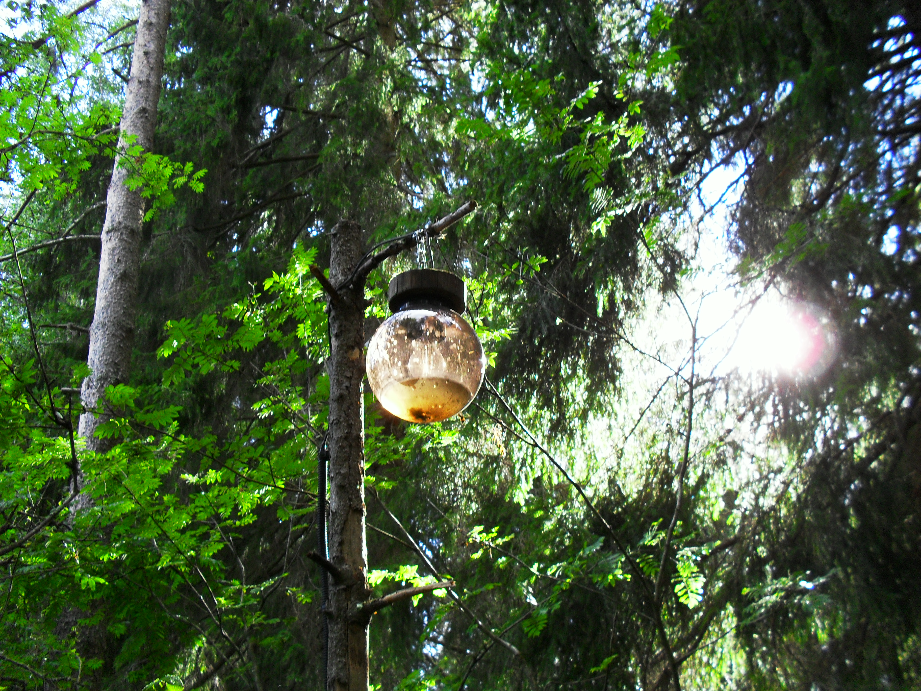 Это фонарики висят на всем протяжении тропинки. Но все заполнены водой. Видимо, накануне были сильные ливни.