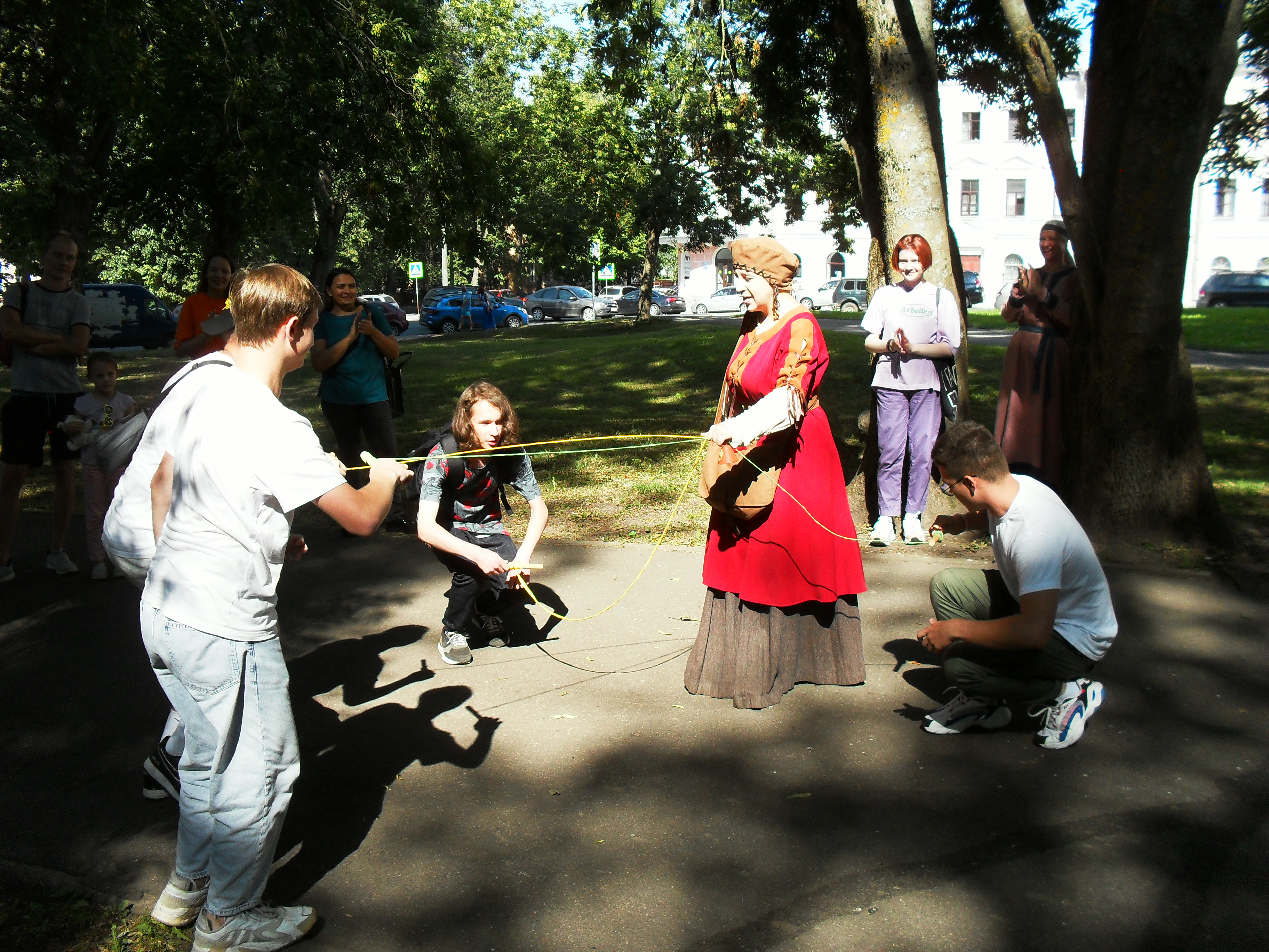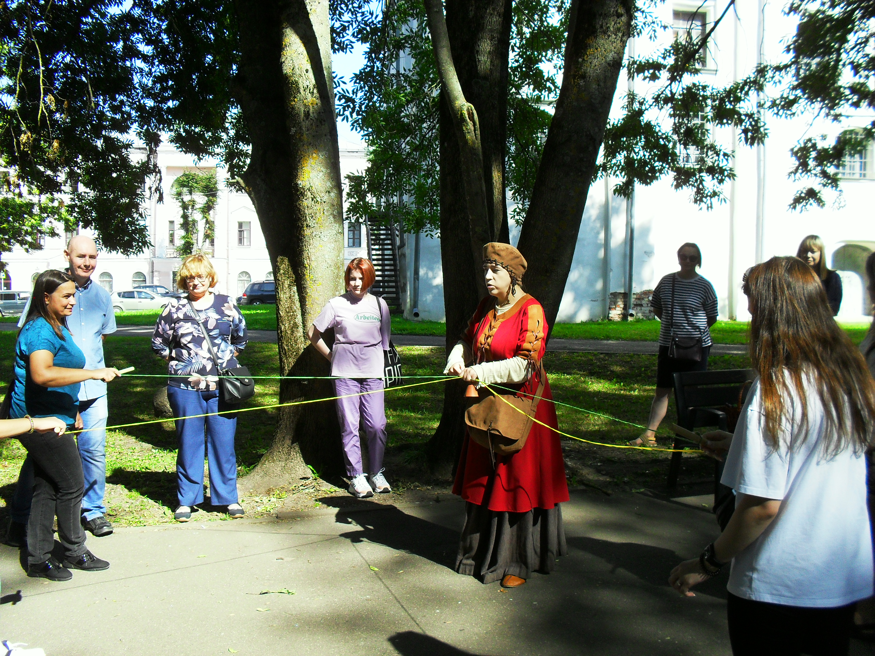 После фонтана нас передали в руки десятнику Мстиславу, который научил нас кидать сулицу и дубиной сбивать рюхи.)) Казалось, что попасть в рюху - это фигня, на на самом деле не так это и просто. Я лично промахнулась.))